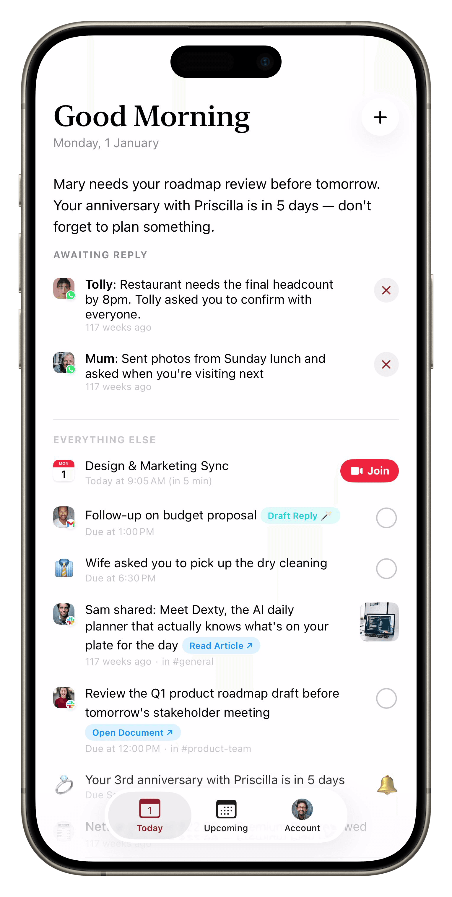 It actually knows what's on your plate. You live your life — Dexty keeps track